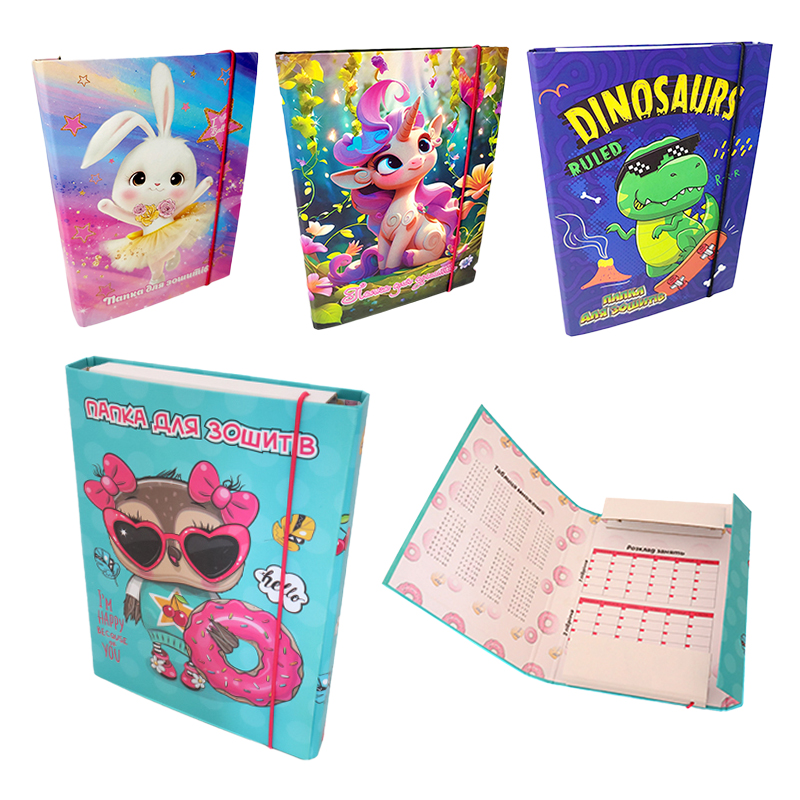Папка для зошитів, В5, ламінов. картон, на резинці, в асорт. Leader