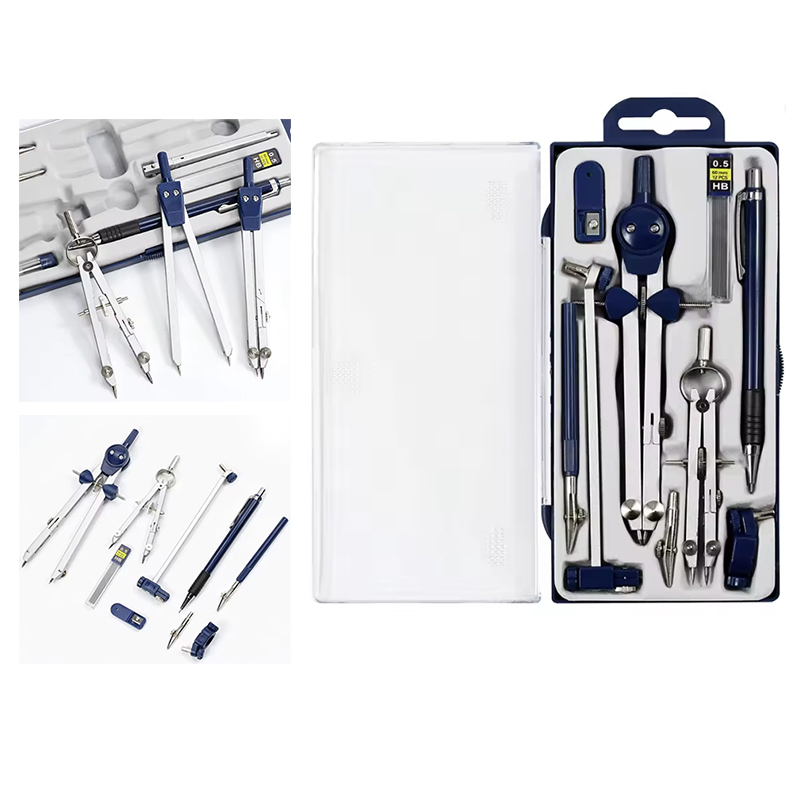 Циркуль метал.,лінійки (15см), ручка, гумка, грифелі,8пр.,в пласт.футлярі,AH1213? 076-12, Імп