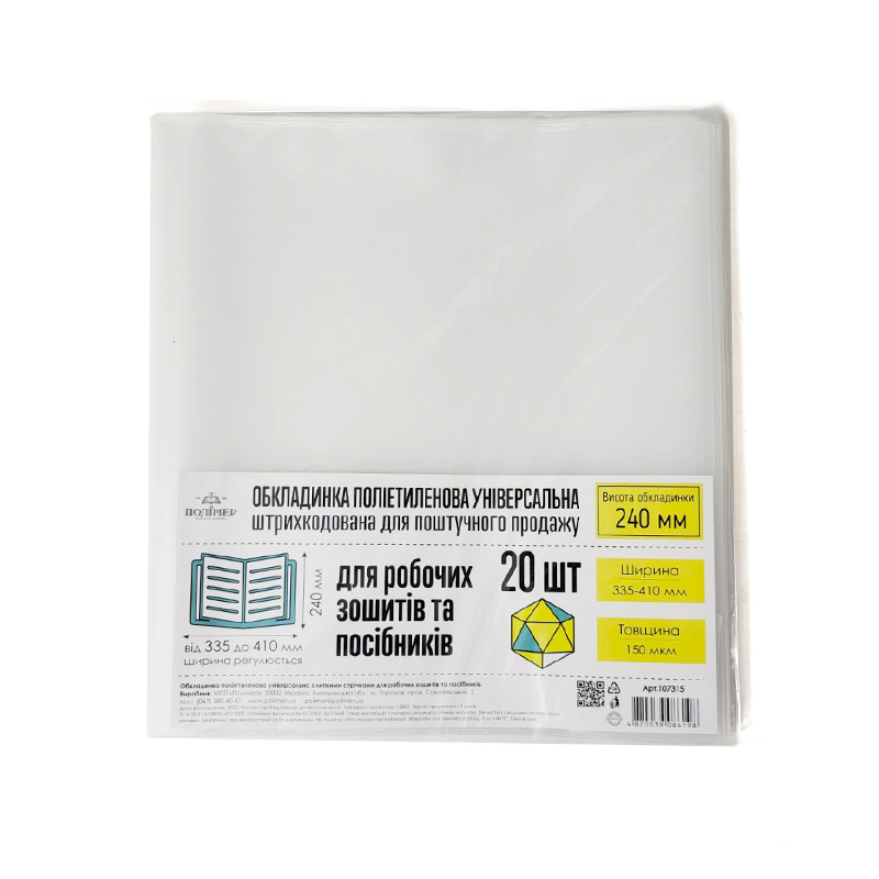 Обкладинки для роб зошитів та посіб, регул, п/е, по 20шт, 150мк, 240*410мм, h-240, арт.107315