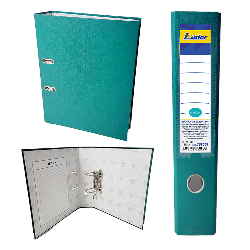 Реєстратор 5см А4 ПВХ бірюзовий (87622) LEADER