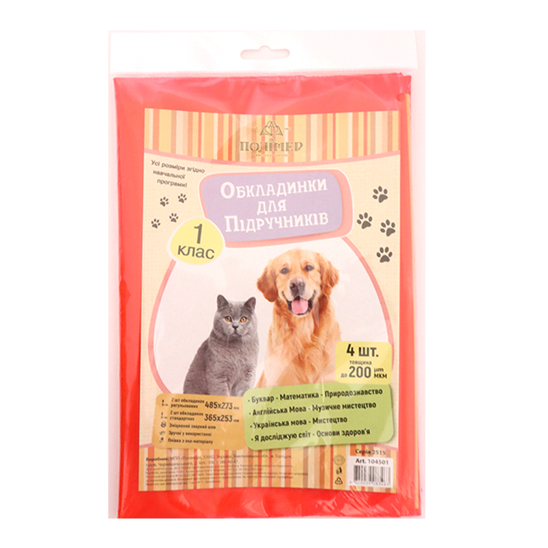 Обкладинки для підручників в наборі 200 мкм 1кл. ( 4шт), арт 104501, Полімер
