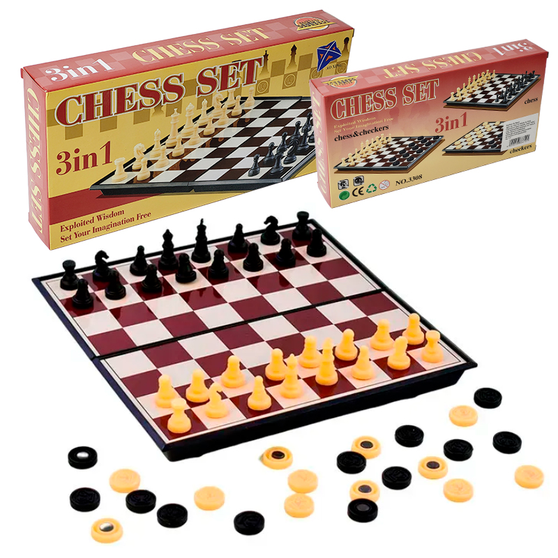 Гра настільна 3 в 1 (шахи, шашки, нарди),, Арт.3308, 26см, 7-10 Імп