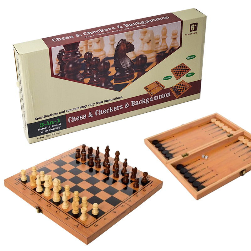 Гра настільна 3 в 1 (шахи, шашки, нарди), Арт.В3140, 40см, бамбукова дошка Імп