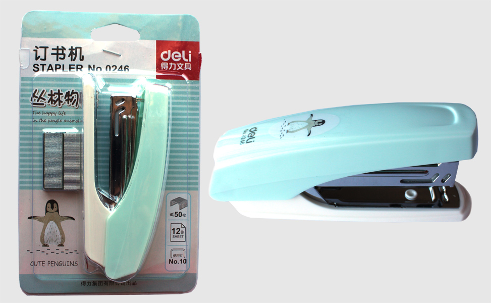 Степлер, №10 15л, пластик.,синій, рожев., жовт., салатовий 0246 DELІ