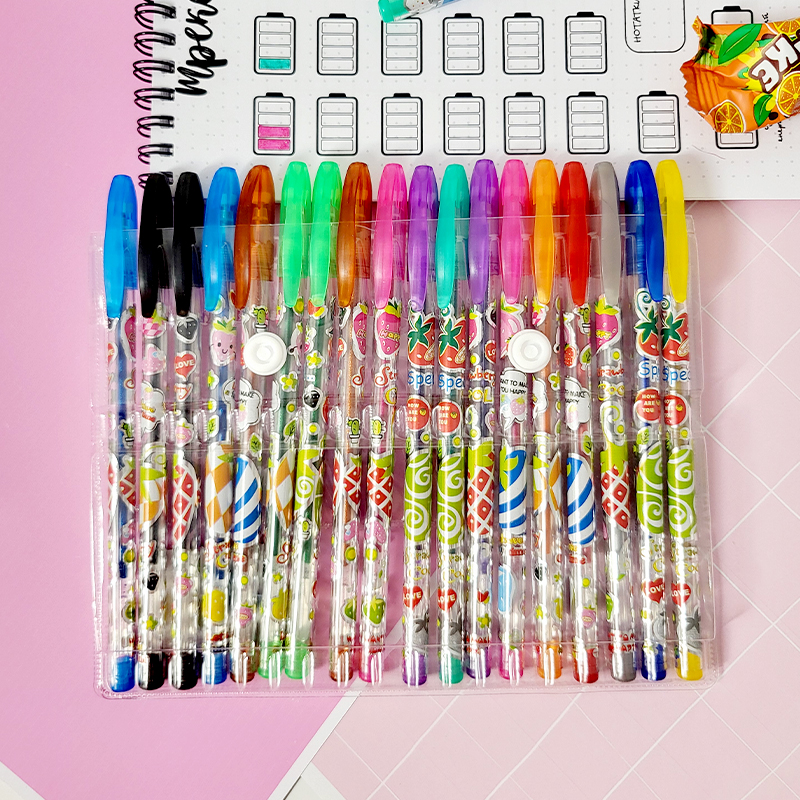 Ручка гелева, набір 18 кольорів, чорний корпус, CQ905-18, 805-18, 74-37, Імп