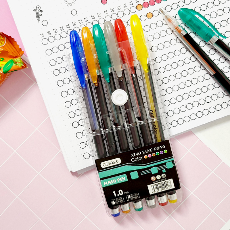 Ручка гелева, набір 6 кольорів, чорний корпус, CQ905-6, 805-6, 74-33, Імп