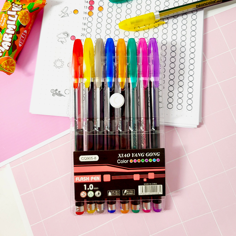 Ручка гелева, набір 8 кольорів, чорний корпус, CQ905-8, 805-8, 74-34, Імп