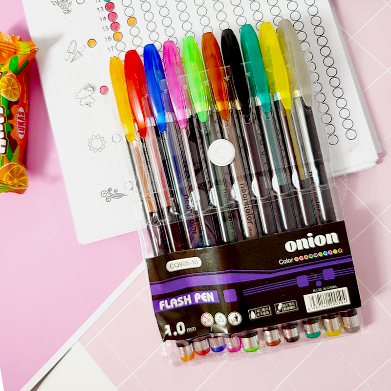Ручка гелева, набір 10 кольорів, чорний корпус, CQ905-10, 805-10, 74-35, Імп