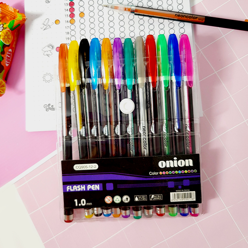 Ручка гелева, набір 12 кольорів, чорний корпус, CQ905-12, 805-12, 74-36, Імп