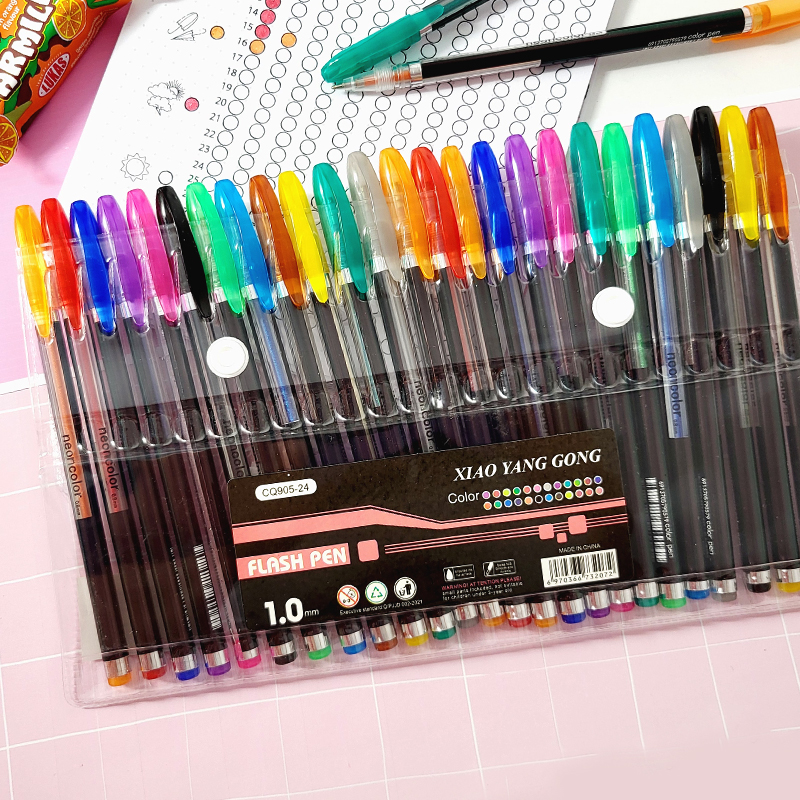 Ручка гелева, набір 24 кольори, чорний корпус, CQ905-24, 805-24, 74-38, Імп