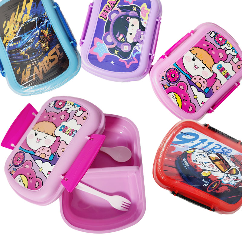 Ланч-бокс, із ложкою, THM3211, пласт., 3 від., кол.в асорт., Імп
