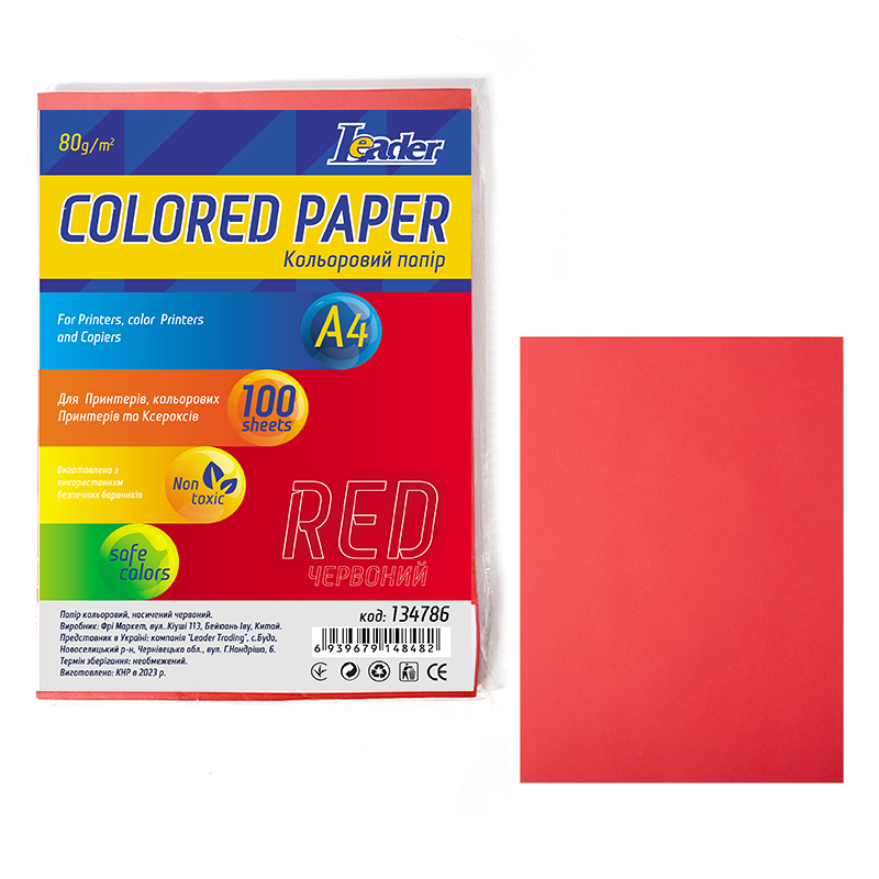 Папір кольоровий A4/80 (100л.) насичений червоний, Leader
