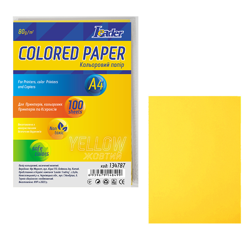 Папір кольоровий A4/80 (100л.) насичений жовтий, Leader