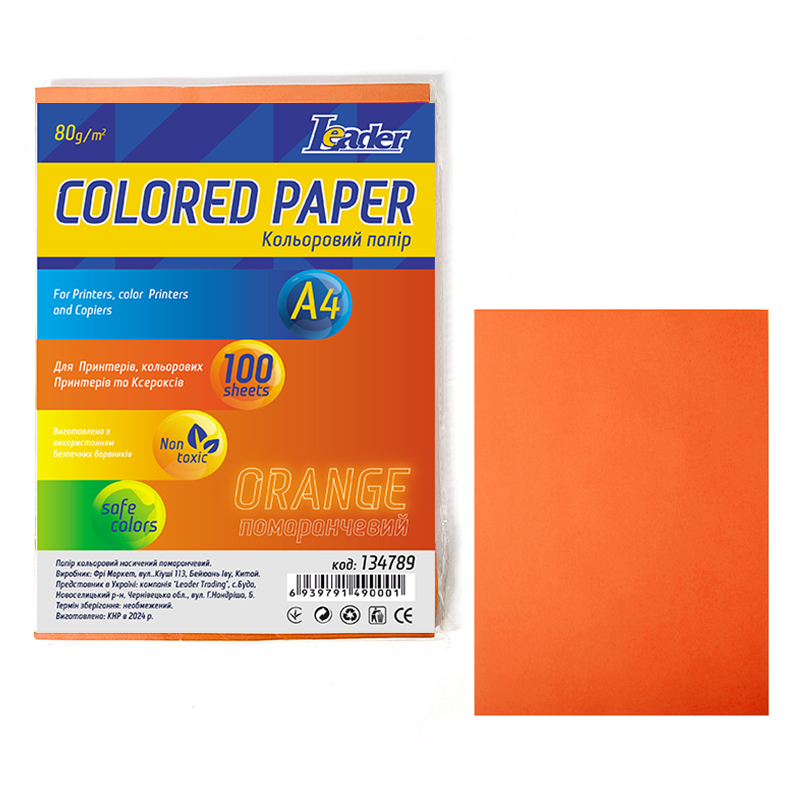 Папір кольоровий A4/80 (100л.) насичений помаранчевий, Leader